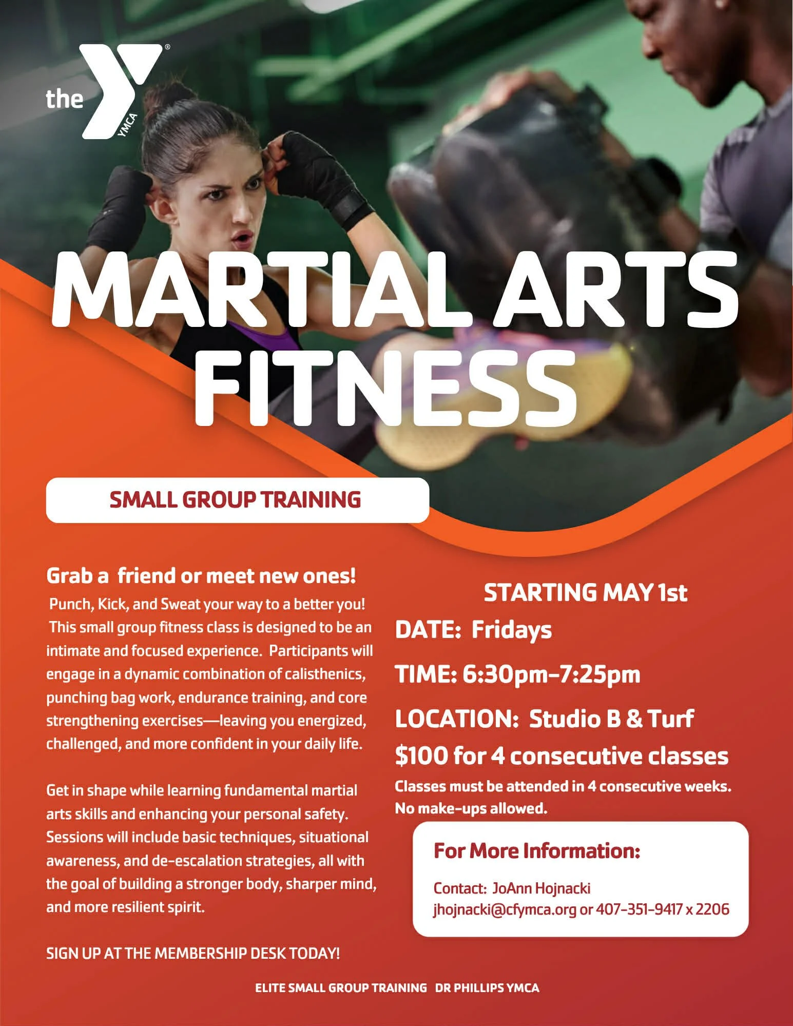 Get in shape while learning fundamental martial arts skills and enhancing your personal safety. Sessions will include basic techniques, situational awareness, and de-escalation strategies, all with the goal of building a stronger body, sharper mind, and more resilient spirit.